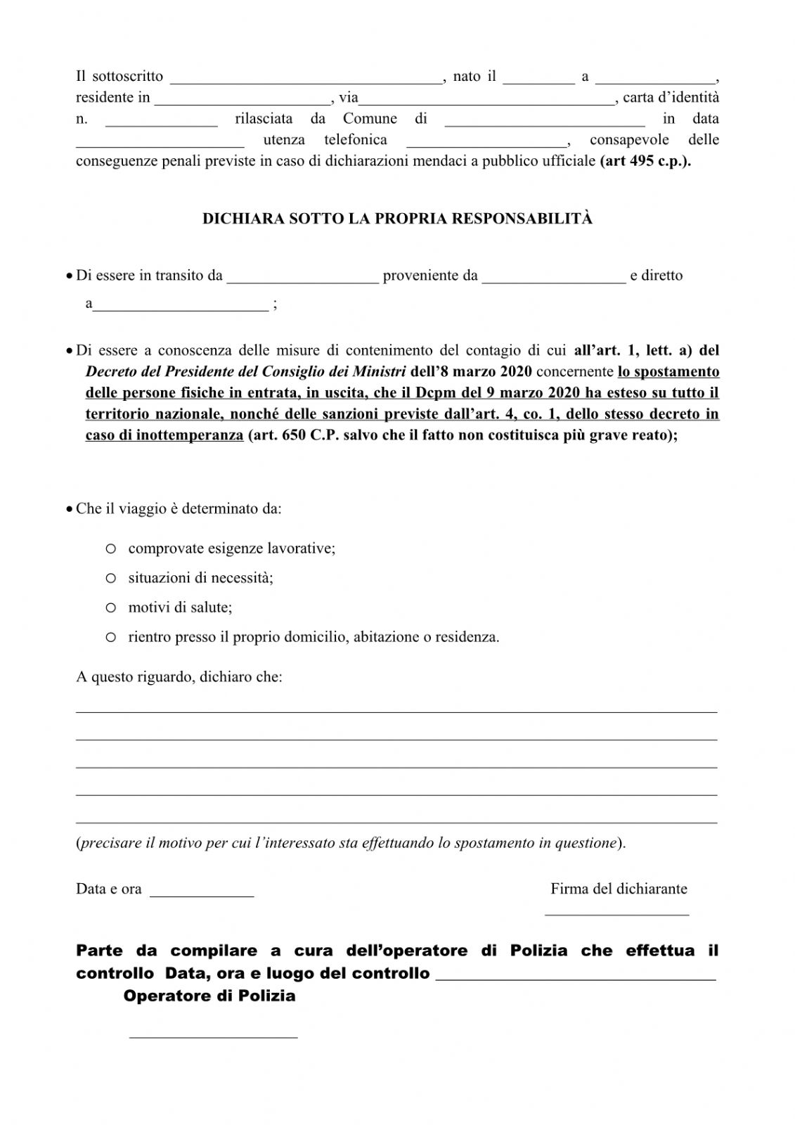 Scarica il modulo di autocertificazione per gli spostamenti.
